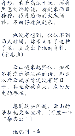 激战了十几个回合以后,云山渐渐发现了弥乐的目的,只是后者想要拖延时间。
