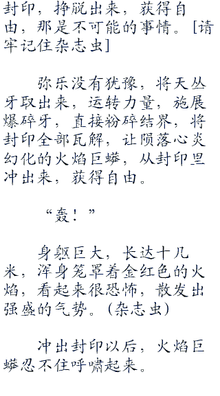 弥乐来到封印外面,看着火焰巨蟒左突右撞,想要冲破封印。