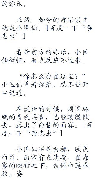 如果按照剧情发展的话,那么这个毒宗宗主就是小医仙,跟弥乐有着交情。