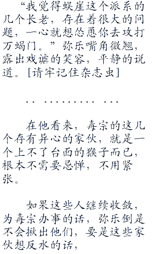 小医仙并不急着行动,先将弥乐安顿在毒宗,然后去准备一些事情,将会掀起跟万蝎门之间的战争。