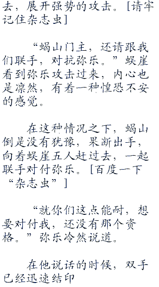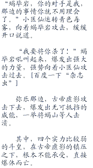 他们打算让蝎毕岩拖延住弥乐或者小医仙一人,其他强者联合起来对付另外一人,这样就能够击溃毒宗的强者。