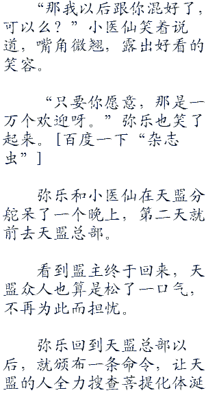 经过思考以后,小医仙还是决定跟随弥乐前去黑角域。