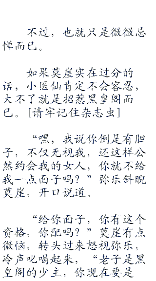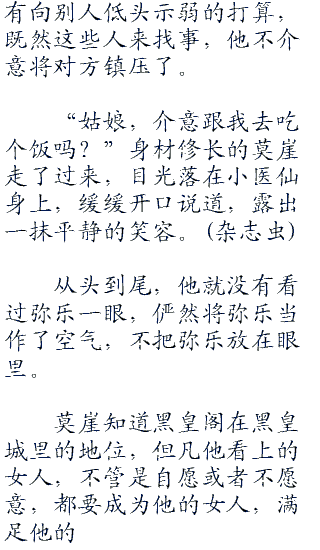 只不过,在他看到一袭白裙,身段曼妙,姿色出尘,十分好看的小医仙时,不由得眼前一亮,觉得这个妮子很不错。