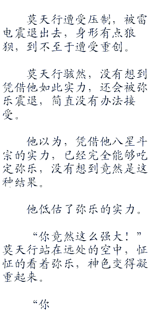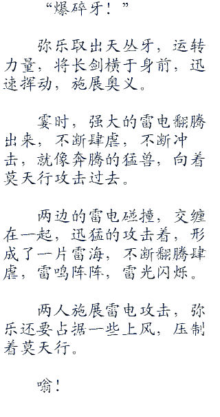 弥乐施展响转,然后配合三千雷动,速度快到极致,让莫天行根本没有办法追上他。
