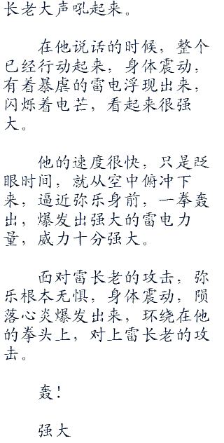 沈云被震退出去,脸上露出骇然的神色,有点不敢相信,没有想到弥乐的实力那么强大。