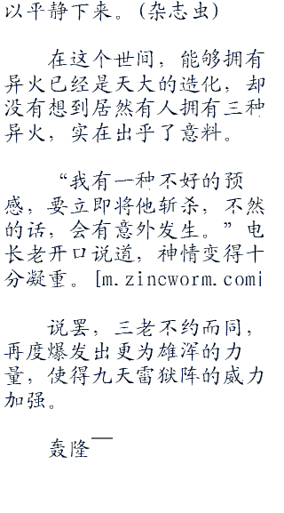 “他居然拥有三种异火,这是怎么办到的。”雷长老倒吸一口凉气,还是难