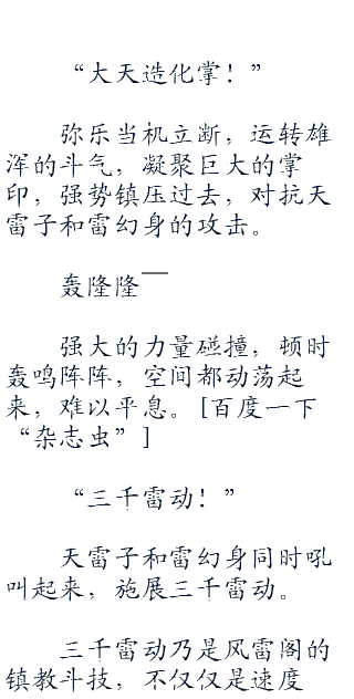在她说话的时候,她迎向了天雷子的雷幻身,展开强势的对碰。
