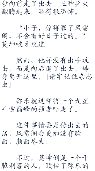 感受到弥乐所散发出来的强大气势,莫坤整个人凛然,没有想到短短十天时间,弥乐的修为竟然提升了那么多。