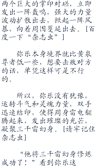 黄泉尊者所施展出来的斗技,只有天阶低级而已,要不是本身境界比弥乐高的话,根本就不能跟黄泉掌抗衡。