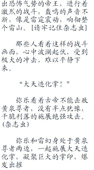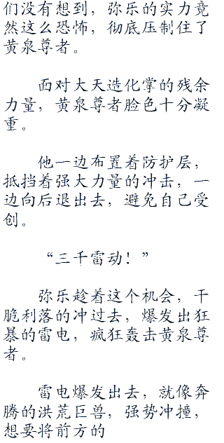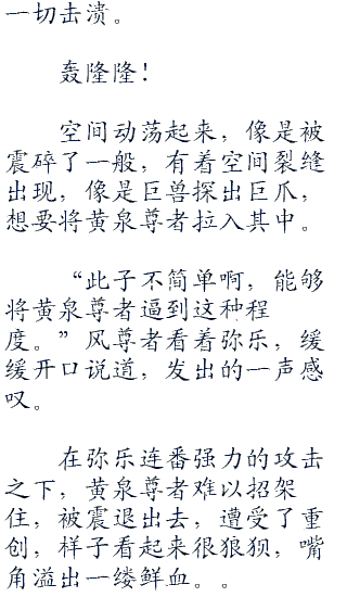 弥乐并没有进入虚化,依然能够跟黄泉尊者抗衡,打成平手,并没有落于下风。