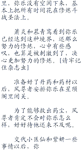听到弥乐这样说,萧炎感到惊讶,直直看着紫妍,简直不敢相信。