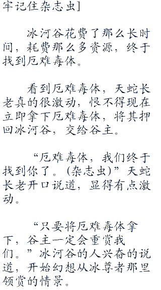 他们进入冰河谷已经有一段时间,不知道现在外面发生什么事情。