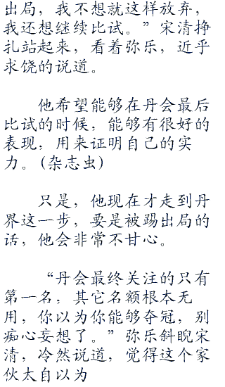 她虽然不像暂时当弥乐的侍女,但是她更加不想放弃丹会的比试,想要在丹会上取得好的成绩。