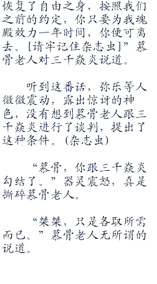 纵然是如今三千焱炎有点虚弱,没有那么强大,慕骨老人也不是它的对手,不敢轻易出手对付它。