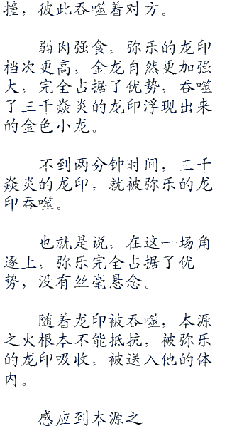 三千焱炎的本源之火,被雷幻身压制着,现在卷缩在禁锢空间的一角,不能挣脱,不过对于弥乐,还是一副非常愤怒的样子,不希望被收服。