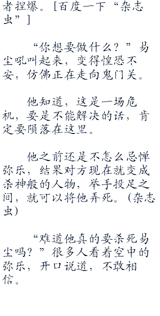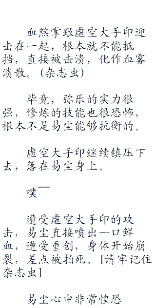 而且,易尘周围的空间似乎都被强大的力量禁锢,使得易尘不能躲避攻击,只能硬撼。