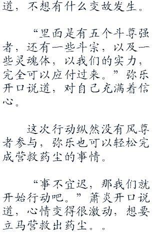 现在,弥乐他们最重要的事情,就是要营救药尘,至于亡魂山脉里的高阶魔兽,等到完事以后,再去收服也不迟。