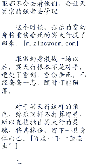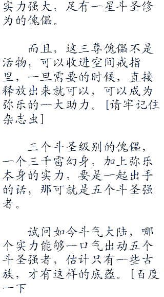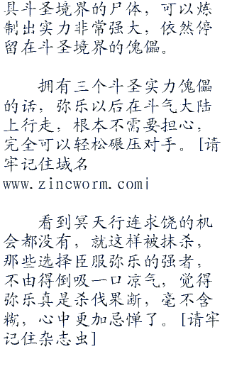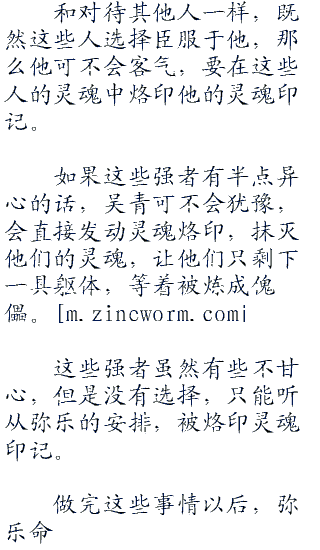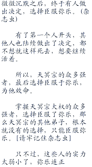 现在这种情况之下,他们根本没有选择的权利,只能归顺弥乐,不然的话,等待他们的下场,恐怕就是被轰杀,然后被做成傀儡而已,跟金银二老一样。