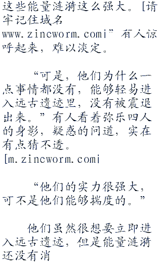 在他说话的时候,他已经运转能量,将小医仙、紫妍和青鳞包裹在里面,继续向着远古遗迹冲了进去,并没有受到什么伤害。