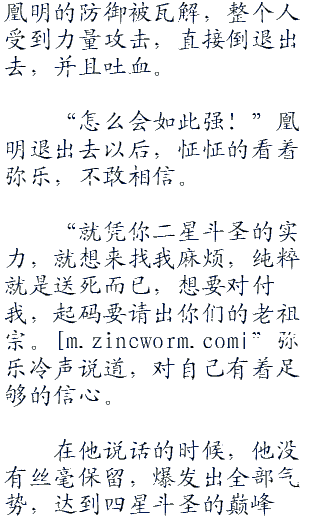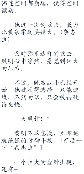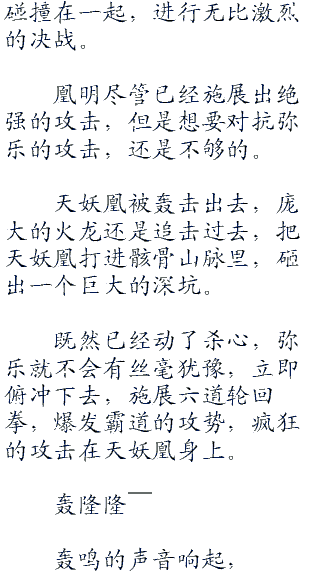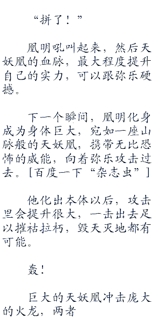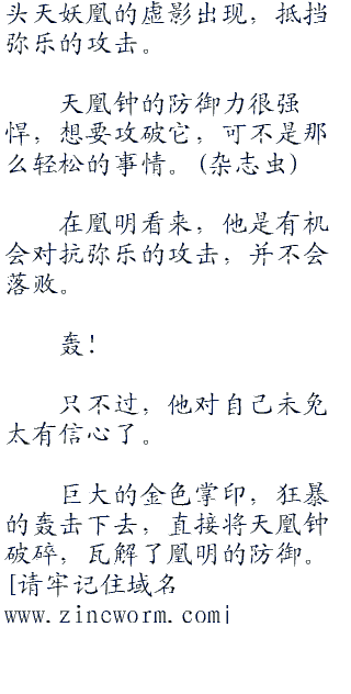 凰明骇然,没有想到弥乐能够跟自己抗衡,而且将他震退出去。
