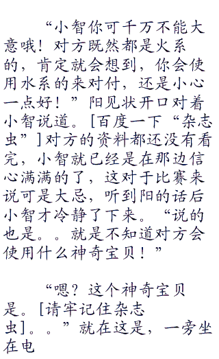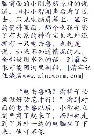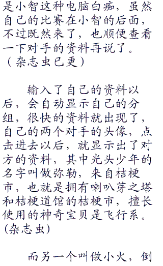 当然这些电脑只能用来查看对手神奇宝贝的类型,还有训练家的资料而已,并没办法查看出对手神奇宝贝的强弱特性和绝招,而此时的小智和小刚两人