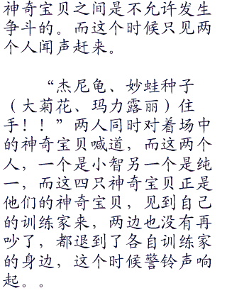 “好的!我会好好照顾它们的!”乔伊小姐见状笑着接了过来开口道,随后就将精灵球交给了身旁的吉利蛋。之后就和吉利蛋一起转身离开了。来人是一25个火红色头发的男孩,看到自己的神奇宝贝被乔伊小姐带走以后