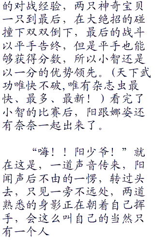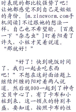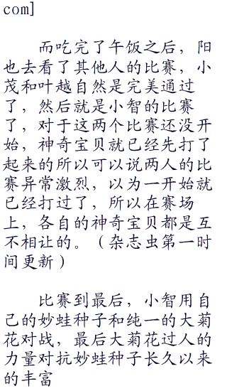 体力已经消耗殆尽的烈焰猴真能打倒美纳斯的话,接过最多也就是平手而已,就27算勉强支撑过去了,阳还是会放出第三个神奇宝贝,而第三场比赛根本就可以说不用打了,只是更让他意料之外的是阳的美纳斯的实力强大,超过了他的计算了,最后发动了猛火也没办法击败它。