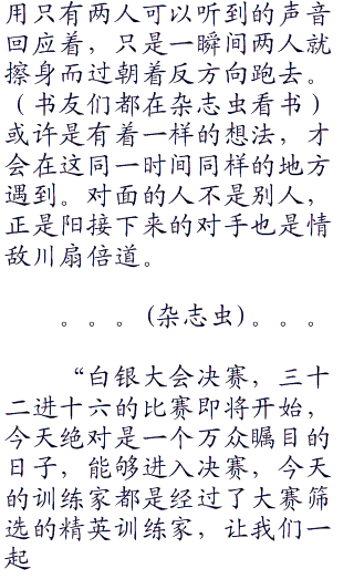 “呼呼呼!!嗯?”已经连续跑了将近一个小时了,饶了白银镇大半圈,不过这个时候,阳抬起头刚好看到了对面一道身影迎面跑来,定睛一看干练的小平头充满精神的面孔,而对面的人也注意到了阳,看到了阳“零零零”以后,对面明显也是一愣,两人看见了对方,但是都当作若无其事的朝着前面跑去。就在两人擦身而过的瞬间。