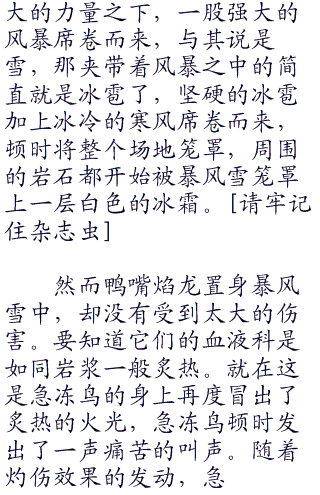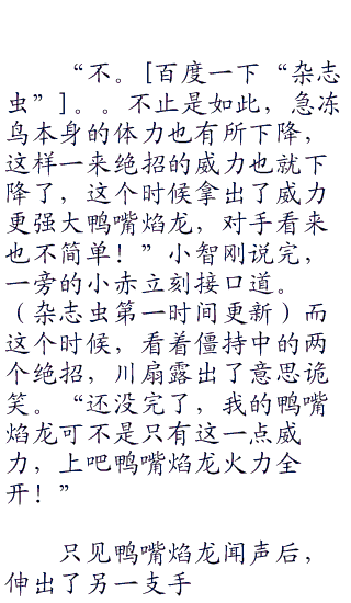“恐怕没那么简单!你们看看急冻鸟。”小智正在兴头上,一旁的娜姿则是有点担心。众人闻声后也是看向了场中,只见此时,在阳身前的急冻鸟,正站在地面上大口的喘着粗气,身上原本干净整齐的羽毛,此时也变得有点凌乱。奈奈见状顿时惊慌道。“怎么会?刚刚的绝招明明还很有威力的样子!”