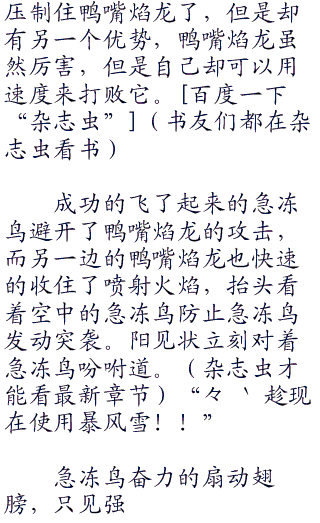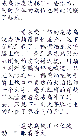 “接下里就是我打败这一只急冻鸟的时候了,阿阳你就觉悟吧!”而