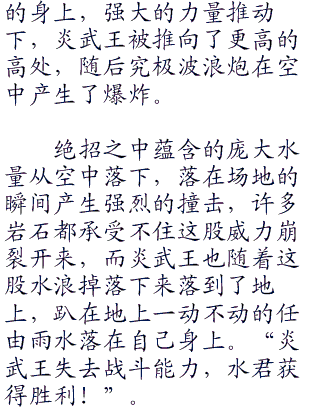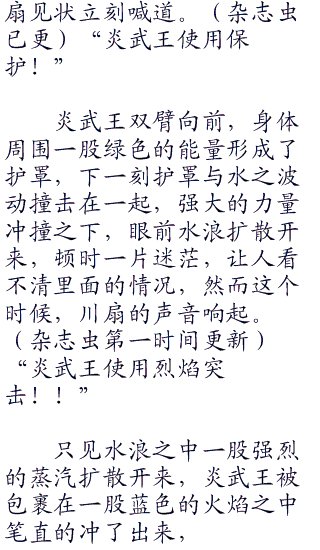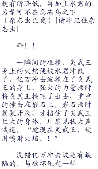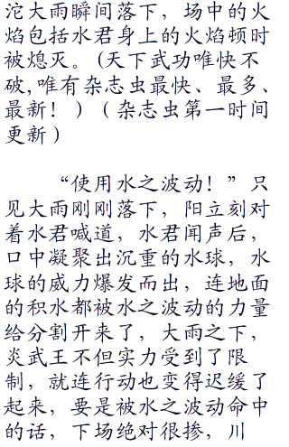 小赤这样说,未免是有些太过绝对了点,但是其实也不无道理,只要仔细的分析就能够明白了,炎武王对水君明显不利,就算能够打赢水君,相信自身也不会轻松,但要打赢水君可不是那么容易的事情了,当然也可能是川扇要拿出属性较为不利的先消耗水君的体力,但是这种战术明显是不智的选择。