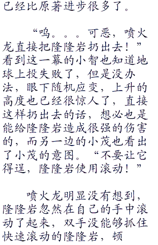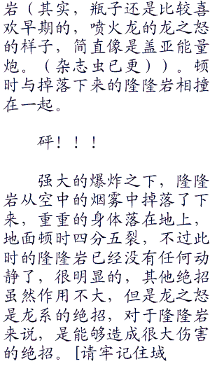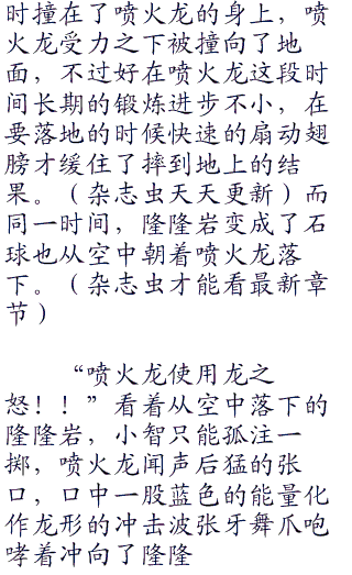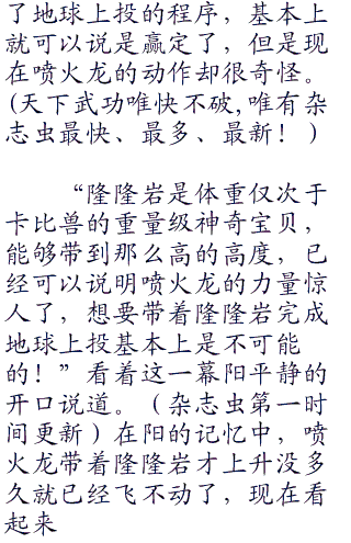 喷火龙顿时朝着隆隆岩飞了过去,隆隆岩身体沉重,所以行动起来也并不方便,而喷火龙的速度,可是在先