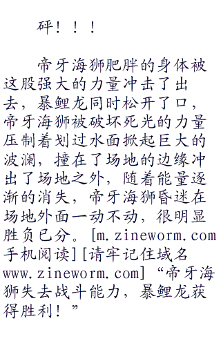 “接下来就是最后一“零零零”击,暴鲤龙直接保持这个样子使用破坏死光!!”咬住了帝牙海狮的身体,此时的帝牙海狮根本没办法脱身,阳下达了最后的命令,咬住帝牙海狮的zuiba直接凝聚