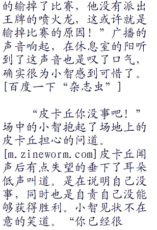 凭借神奇宝贝们的优越发挥,一开始小智就占据了上风了,只不过对手虽然是个女孩子,但是实力也是不弱的,到了下半场奋起直追,小智的神奇宝贝接连战败,一直到最后,最后上场苦苦支撑的皮卡丘还是倒下了。而代表着小智所有神奇宝贝已经全部变成了黑色,说明胜负已定。