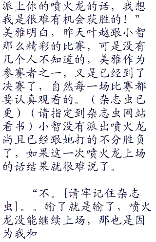 “胜负已分,本场比赛的胜利者是来自关东彩虹市的美雅选手,小智选手很可惜