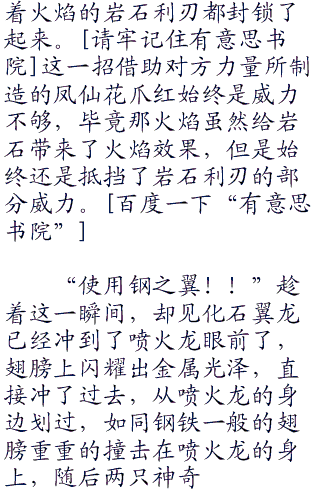 “趁现在使用水柱喷射!!”看到这一幕阳裂开对着哥达鸭喊道。哥达鸭闻声之后,脚下的水浪直接将哥达鸭包裹住随后朝着空中冲了上去,眼看着就要命中喷火龙了,只见小赤双眼一凝,看样子好像先前就想到了阳的想法了,毕竟两人已经不是一一次交手了。“使用烈焰突击!”