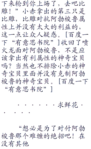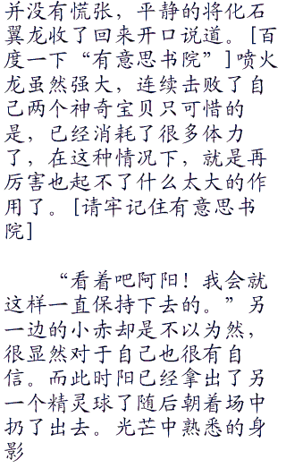 “上啊喷火龙,使用火焰突击!”只见不等爆炸的烟雾消失,小赤就已经喊道了,喷火龙闻声冲了出去,全身被蓝色的火焰包裹着,直接朝着眼前一团烟雾冲了过去,另一边的阳见状也是毫无畏惧的喊道。“化石翼龙使用亿万冲击波!!”