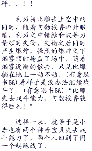 “什么??怎么会?”看到这一幕就算是小赤也忍不住惊讶道。但是很快脑海中就浮现出了一个画面了,虽然先前比雕看起来确实避开了所有的利刃了,但是,其实一开始阳就是在打这个主意的,因为同时操控多道利刃,所以没办法完全掌握。