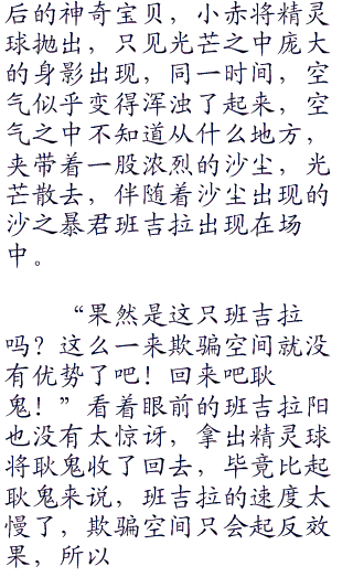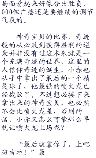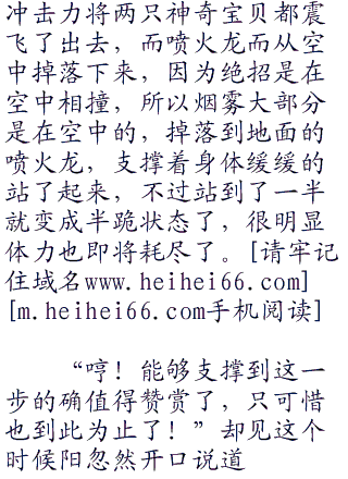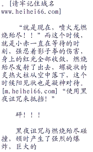 “那个是。。。。”随着烟雾逐渐散去,只见此时在耿鬼对面的喷火龙,全身闪耀着红色的光芒,扩散出一股又一股的热浪,周围的草地都因为这股热浪而晃动了起来。所有的热能正在不断的朝着喷火龙的体内聚集着。小赤见状裂开喊道,“飞吧喷火龙!一定要命中啊!”