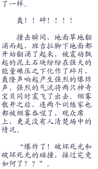 “喔。。。班吉拉对暴蝾螈吗?这两只神奇宝贝可都是各个地区,稀有程度可以媲美传说神奇宝贝的神奇宝贝呢!看来这一场比赛会很有看头喔!”观众