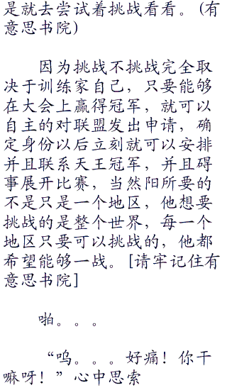 “呼。。。终于结束了!这是白银大会开始以来最累的一场比赛!”从房间的浴室里面走了出来,阳惬意的伸了个懒腰,说真的这一场比赛,真的是参加白银大会以来最累的一场的,想想也知道,从比赛开始到现在,可是没有一个人能逼阳拿出所有的神奇宝贝的。