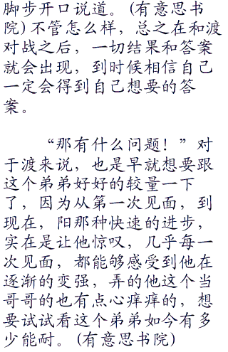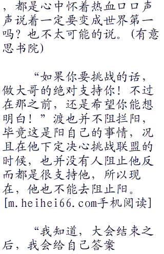“决定了吗?要向联盟挑战??”见阳没有说话,一旁的渡靠着椅子看着黑夜的天空开口说道。其实听到了小桩那么说的时候,他也感觉到很意外,没想到阳竟然有那样的想法,而且不止是挑战联盟那么简单,还想要挑战整个世界的联盟,心中感到jiaoao之余,也有一些担心。