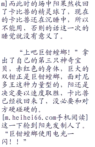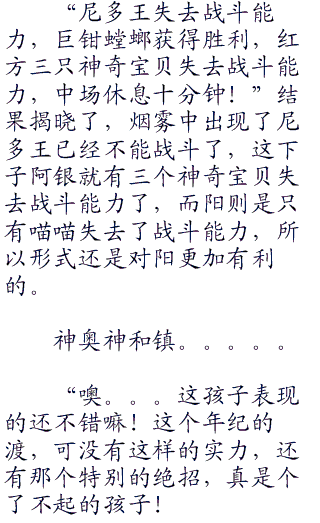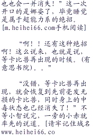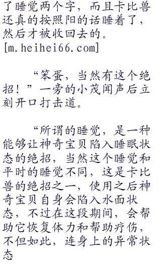 “好险好险,没想到还有这种方法!不过阿阳刚刚说睡觉是什么意思啊?睡觉也算是绝招吗?”观众席上小智看到这一幕不由的替阳松了一口气,不过想起来,先前阳在收回卡比兽的时候似乎喊
