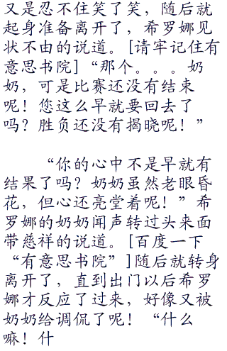 “呵呵呵。。。好好好不答应不答应,好了,我先回去了!”听到希罗娜那么说,奶奶