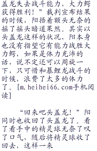 “上吧大力鳄!”听到了阳的话后,阿银也露出了难得的笑容,以前的他就算是有笑,也大多是一瞬间,更多的是冷笑,但是这一刻完全的不一样的,他笑着拿出了最后的神奇宝贝大力鳄,光芒之中,大力鳄的身影再度出现在了眼前,而它的对手依旧是不肯回精灵球的头盖龙。