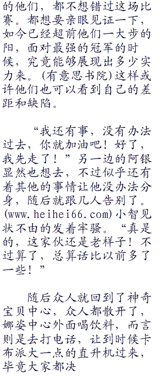 “呜终于结束了,虽然很遗憾,不过这一次比赛还是没有什么遗憾,对了,你们接下来有什么打算呢??”闭幕式结束了,白银会场恢复了以往的平静了,阳和小智一行人一起出了会场,小智伸了伸懒腰随后对着众人开口说道。因为目前他也还不知道要做什么呢!