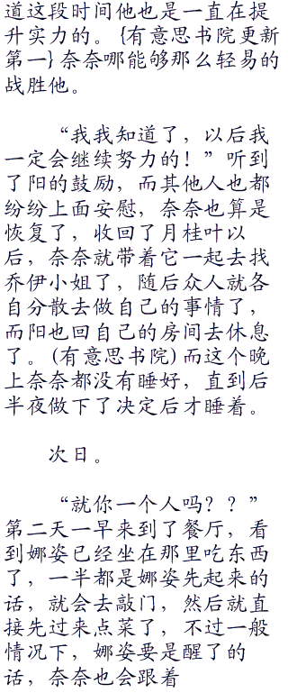 “不要怀疑自己,比起那个时候,你已经进步了很多了,但是你要清楚,自己在进步的同时,别人也在不断的进步的!所以想要变得更强,需要的是更多努力!”见奈奈情况好了一些后,阳便再度开口说道。要知