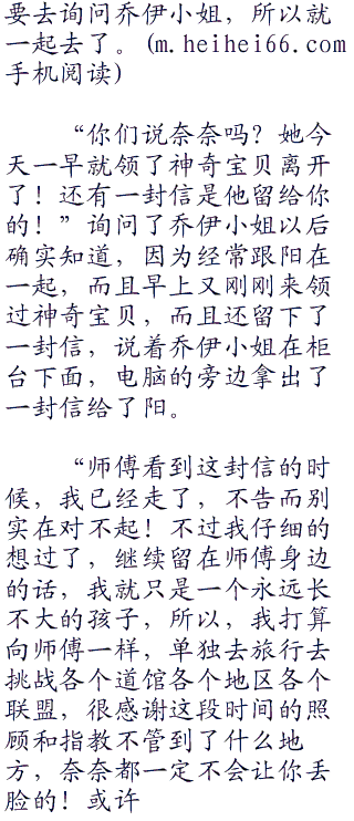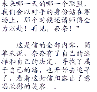 “真。。真的吗?可。。可是我还是输了!”听到小智那么说,奈奈的心里总算好过一些了,但是还是有点失落,毕竟还是输了,这说明或许她的战术是错误的。阳见状笑了笑。“输了不是再正常不过的事情吗?如果我这个做师傅的输给你的,那不就说明以后,你在我这里也学不到什么了!”