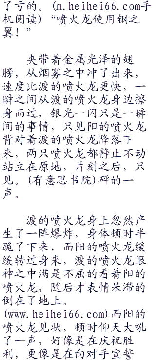 只见轰的一声,剧烈的爆炸声猛然想起,一阵烟雾在空气中扩散开来,只见一道身影从烟雾之中飞了出来,众人一眼就认出了,正是渡的喷火龙,飞出了烟雾之后,渡的喷火龙仓惶落地,大口的喘着气,看样子刚刚的对抗之中,它是吃