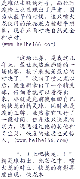 一声仰天的怒吼,连带周围都卷起了强烈的气流,冲散了笼罩在自己身上的光芒,暗黑的皮肤幽蓝之中透着紫色的火焰,一出场就给人以前所未有压力的压力,正是阳最强的同伴喷火龙,面对的同样是喷火龙,两只阳的喷火龙眼中更是夹带则会强烈的战意,而对面渡的喷火龙也是一样,除了渡本身的快龙之外,它还从来没有感受过那么强大的压力。